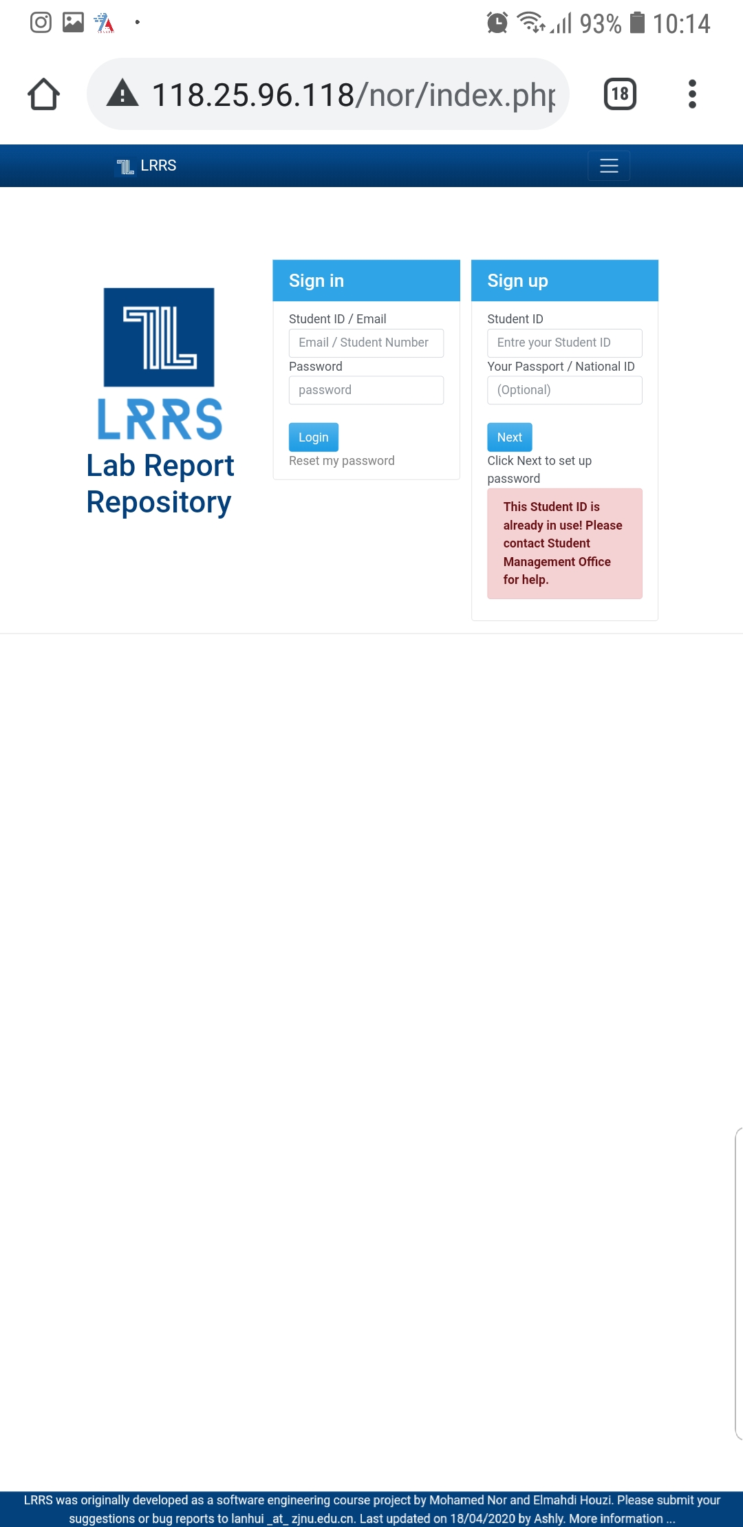 Created attachment 74 [details] I attached the error message it showed I did another class where we used LRR so now even though on a new id number I still can't sign up for LRR with the same email