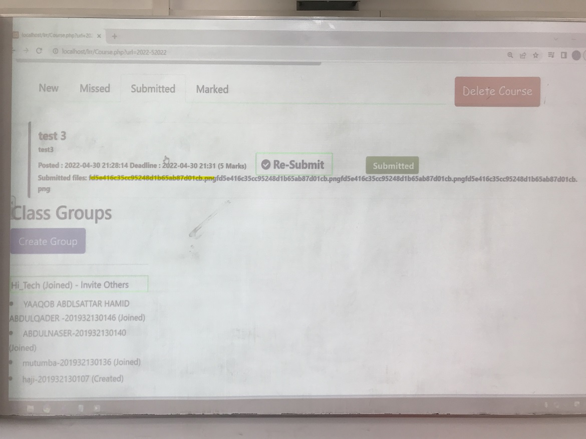 Created attachment 227 [details] Many repeated file names The assignment's type is Group. A group member submitted the assignment by attaching the file fd5e...01cb.png. - The file name fd5e...01cb.png has been repeated many times after "Submitted files:" in the group member's Submitted tab. See the attached picture ManyRepeatedFilenames.JPG. - The file name does not show in other group members' Submitted tab. Instead, "No Attachments found." is displayed. See NoAttachmentsFound.JPG. Hui